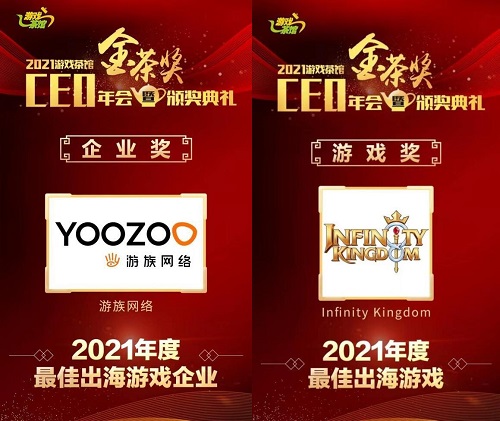 1月12日,由游戏茶馆主办的第九届CEO年会暨金茶奖颁奖典礼在上海举办,游族网络脱颖而出,凭借卓越的全球化研运一体实力,荣膺“2021年度最佳出海游戏企业”,游族自研SLG力作《Infinity Kingdom》(《战火与永恒》)也因优秀的海外表现斩获“2021年度最佳出海游戏”。