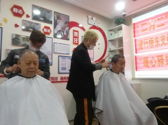 建行邢台桥东支行持续深入做好“劳动者港湾•暖心驿站”的暖心关怀服务工作,带着客户做公益,携手爱心客户邢台市黑眼圈美发店从“头”做起,为到店老年客户提供免费理发服务,真诚回馈广大新老客户,实现银客互惠,提升了建行品牌形象和社会影响力。