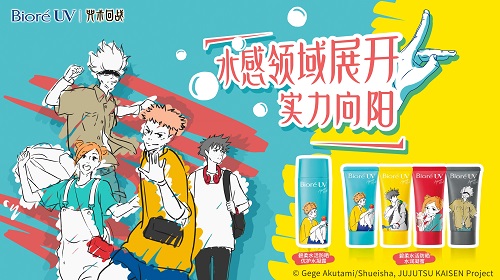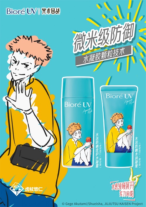 风靡亚洲的漫画作品《咒术回战》备受动漫爱好者追番热捧。作为日本少年周刊JUMP杂志连载的超人气漫画讲述了充满热血与感动的故事,每一位角色都在为了守护自己的信念而战。花王“碧柔(Bioré)”携手《咒术回战》跨界破圈,推出联名合作款“碧柔水活防晒水润凝蜜”和“碧柔水活防晒优护凝露”,于2月下旬全面上市,天猫、京东、屈臣氏等全渠道限量发售,火力全开。