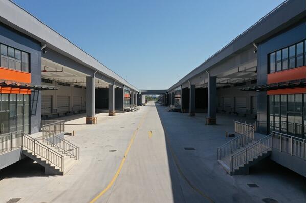 国内大多数分拣中心库房一般为“两联”或“三联”,而本项目为4个双层分拣中心库房相联,内部依靠车道连接,货车可直接从分拨中心一层开往二层,在二层任意前往其他3栋库房装卸物品,极大缩减运输货物时间,提高物流运输效率。