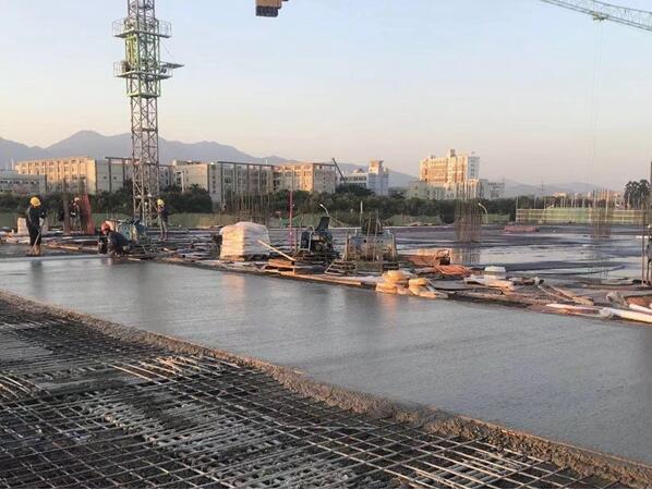 项目为双层坡道物流仓库,2个上二层坡道总长共计310米,其中坡道梁最大跨度为20米,二层平台面积共计2.2万平方米供物流车辆行驶及装卸货,平台的下横梁相当于坡道的“肩膀”,用于支撑起上面过往的车辆。为了让大荷载、大跨度的“坡道”更结实,项目部超前谋划、精心组织,采用预应力混凝土结构,累计使用C40混凝土共19901立方米,预应力筋采用有粘结高强低松驰钢绞线,孔道成型采用高密度聚乙烯树脂塑料波纹管呈曲线型布置,确保坡道混凝土达到整体抗裂能力强、刚度大、抗剪能力和抗疲劳性能好的效果。
