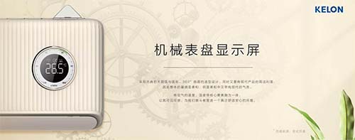 针对外观形态,基于生活观察,年轻人的空间中小动物的身影愈发常见,科龙空调新品选用“小耳朵”的拟人化元素,作为与年轻用户沟通的媒介,同时融合边框的圆角设计和充满秩序美的爱奥尼克罗马柱,通过面板创新的凝脂注色工艺,让产品在复古的风格中,依然能够体现简约与质感,这也让科龙睡眠空调小耳朵,可以适配北欧简约、法式复古等多种家居空间。除色彩与纹理外,小耳朵创新显示方式,让空调温度、湿度共同呈现于机械风格的表盘之上,让室内空气情况变得可观可感。