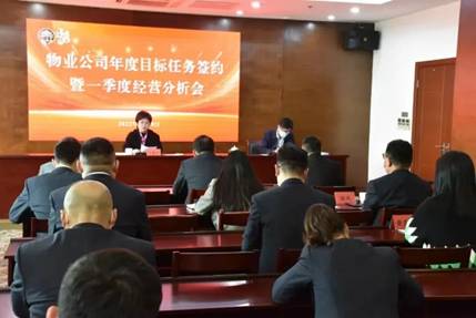 4月18日下午,市文旅物业公司召开2022年度工作目标签约暨一季度经营分析会,泰州市文旅集团党委委员、副总经理叶慧莲,物业公司中层以上干部和骨干代表,以及第三方服务机构的代表等参加会议。会议的主要任务是:压实各部门、各分公司全年的目标任务,分析物业公司一季度的经营情况,提出下一步的主攻方向。