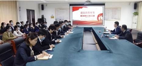 活动中,泰州市文旅集团青年员工代表一起回温共青团的光辉历史纪录片。
