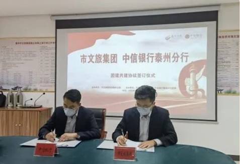 以岗相联,共建共进。为实现团组织优势互补,泰州市文旅集团团总支与中信银行泰州分行团委进行联学共建,签订团建协议。