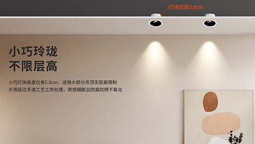 其0.7cm窄边设计尽显精致极简,表面细砂白与天花的颜色一致,能达到隐匿于天花的效果;灯体高度仅有5.8cm,适用大部分吊顶无层高限制,可轻松搭配任何家居装修风格。