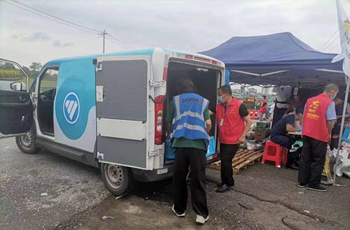成都智蓝汽车服务站立即派出智蓝精灵全勤保障物资配送。由于智蓝精灵在正式上市前便已在当地市场投入试用,并且收获了良好的市场反馈和用户口碑,所以这次保供任务下发,智蓝精灵便立刻整装待发。
