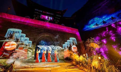 自贡作为四川历史文化名城,以“彩灯文化“驰名海内外。2018年,华侨城牵手自贡,打造永不落幕彩灯新城——自贡中华彩灯大世界,新兴的文旅运营思路为传统彩灯文化注入了全新生机。自贡中华彩灯大世界继承了传统彩灯文化的菁华,却又超越了“元宵花灯”的传统边界,在彩灯创作主题不断赋予中华民族对传统文化的全新表达,为自贡的城市文化名片打造了全新的展示窗口。在广元剑门关,坚持以剑门关IP为载体,深度挖掘与活化在地传统文化,打造出聚焦红色文化、再现蜀道风云际会的全国首个实景崖壁灯光演艺秀——《剑门长歌》,以及延续蜀道农耕原乡文化,富有秦巴山区特色风土人情的双旗美村。从《剑门长歌》的波澜壮阔,到双旗美村的原乡烟火,传统文化的涓涓之水,已汇聚成剑门关文化的汹涌巨浪。