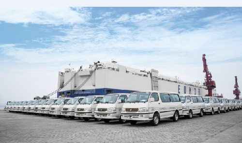 出口埃及市场的1000辆金旅海狮在厦门现代码头准备装船