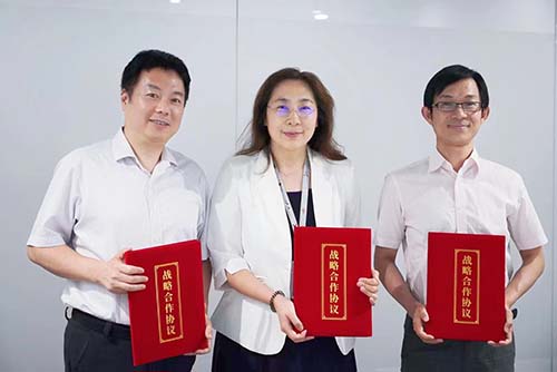 三方举行签约仪式(从左到右依次为北京智学恒通商贸有限公司总经理孙新阳、索尼(中国)有限公司中国教育事业部总经理赵威、北京码高教育科技有限公司首席执行官王好强