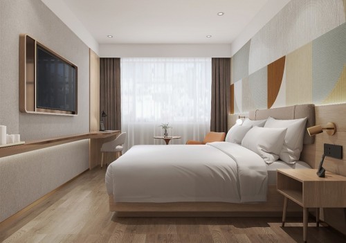 艺选安来酒店在住宿品质上呈现多感官的舒适体验,在大堂内饰上以雅致柔和的大地色系为主,采用实木、大理石、金属、布艺等不同质感材质搭配定制家具和几何造型灯饰,为住客营造轻松自在的空间享受;酒店房间设有办公区、配有休闲椅及咖啡桌的休息区、几何形艺术装饰画、步入式衣柜,每一处细节皆巧妙诠释品牌标志性的现代美学风格,床品、电视、卫浴设备及洗护用品皆选自全球甄选的大品牌,在功能性、设计感和舒适度上取得美妙平衡,为商旅客群带来高性价比、越级品质的入住体验。