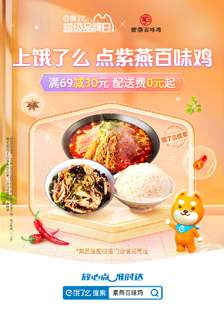 缤纷七月,美好如约而至。备受大家喜爱的紫燕百味鸡X饿了么强强联合,“超级品牌日”活动限时来袭。7月3日,一场来自紫燕百味鸡的美味盛宴,满69-30元超值优惠,掀起舌尖上的狂欢。