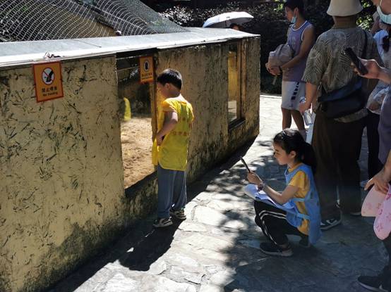 7月9日上午,骄阳酷暑,孩子们却不曾停下探索的脚步。这次活动与传统的老师带队学生听的模式有一些不一样,这次带队的是孩子们手中的学习单与自己的好奇心。长颈鹿的宝宝生下来有多高?袋鼠宝宝是出生就有育儿袋吗?大象的鼻子为什么那么长?……这就是动物园里藏着的“小宝藏”。几个家庭组成的小型“寻宝队”,认真地在讲解牌的字里行间寻找答案。这样的探索方式避免了走马观花式的游览,让孩子们不仅观察了动物的形态行为,还注意到了平时很难记住的文字知识,结合画图的题目将图像记忆更加深刻地印入了孩子们的脑海中。“神奇动物在哪里”,虽然没有魔法,但是只要有好奇心,一切动物皆可神奇。