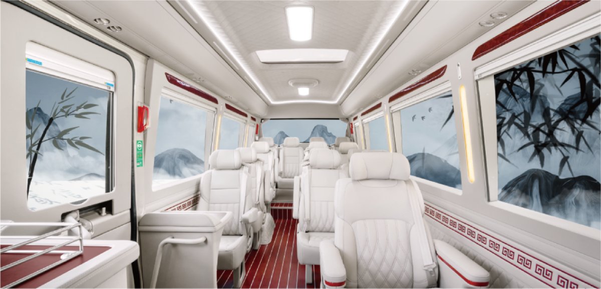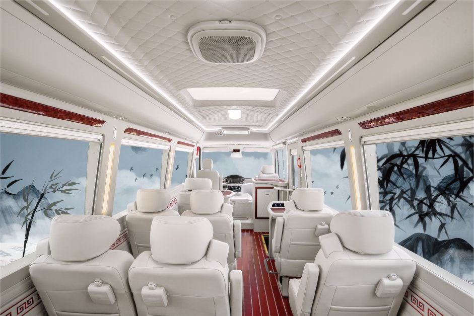 一直在高端公商务领域发力的宇通,也在不断尝试积极拥抱变化。在之前推出的宇通T7星河版中,人民大会堂风格的星空顶,就很好诠释了国人特有的情怀,到宇通T7星宇版,国风的应用显然元素更多,也更成熟。贯穿式的回形纹,环绕整个车辆,中国红的颜色和精致的刺绣缝线既有格调又震撼,这与整车所传达的低调内敛但追求品质感的气质定位十分契合。