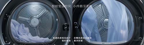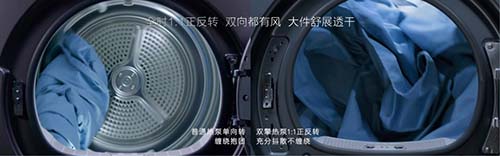 为什么会这样?这是因为传统干衣机只有一个电机,要同时驱动内筒和风机,因而只能做到单向转,内筒正转时才有风,反转和不转时没有风。也正是因为这个原因,很多家里有干衣机的用户会抱怨自家的干衣机使用体验不好,大件床单烘不透、小件丝绸不敢烘,特别容易缠绕起褶皱。