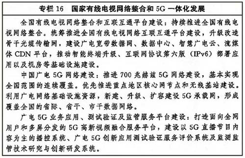《规划》提到,要持续推进国家有线电视网络整合和5G一体化发展,利用广电网络基础设施资源,新建、升级、扩容建设5G承载网形成覆盖全国的省际、省干、市干数据网络。