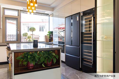 就拿卡萨帝冰箱来说,她能带来新一代厨房场景,在使用层面,用户可以一键下单全球生鲜,并获得专属食谱,只要选中喜欢的食谱,厨电就能开启智慧烹饪,酒柜和冻藏柜也会适时推送配餐饮品和水果。而在厨居美学层面,冰箱还能契合家装风格,完美嵌入橱柜,避免突兀、磕脚等细节上的硬伤。
