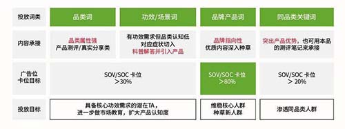 5.分类预埋笔记内容,实现关键词精准卡位,根据SOV、SOC效果不断优化投放目标。