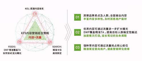 2.制定营销策略:基于数据洞察,通过KFS内容营销组合策略将产品内容与流量玩法进行高效组合,提高营销效率。