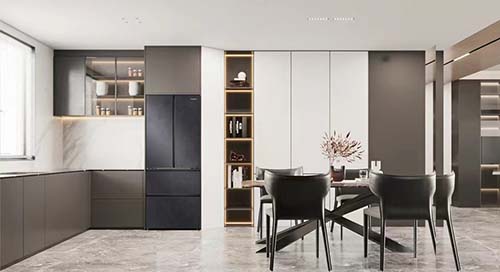 想要获得这样的厨居美学体验,不仅要在产品外观设计上做出突破,还需要与厨房场景进行融合。不过在实际操作中,为了给冰箱散热,在入户安装时,用户需要给冰箱左右两侧预留10cm左右的散热缝隙。这样不仅浪费空间,还容易积灰,更让用户苦恼的是,原本和谐的厨居美感也不复存在了。