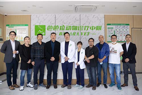 【左一上海联影销售经理徐智骏;左四上海市畜牧兽医学会小动物医学分会会长牛光斌;左五芭芭拉宠物医院院长-王琦;左六芭芭拉主治医生林祎】
