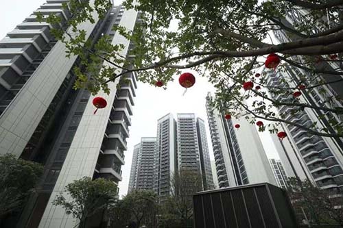 建筑外墙均采用真石漆工艺,灰白色与深灰色在阳光下互相辉映,彰显高品质的居住环境。“我们组织了两次工地开放日活动,组织了十余次业主代表见面会及多次线上沟通会。业主代表对原来的深灰色涂料提出意见,我们就将其提升为真石漆工艺,显得更有质感。”开发商现场负责人一一介绍。