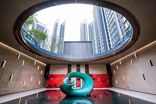 半山臻境酒店式的入户大堂,通过天圆地方的构造,水天一色,这是中华传统文化的礼仪延续,也是对居者归家时的庄严接待。”开发商现场负责人说。半山臻境依山而建,经过让人印象深刻的“天圆地方”入户大堂,搭乘垂直电梯就能来到定制的下沉式多功能会所,这里暂时作为入伙大厅,迎接回家的业主们。从会所能到达阳光泳池和下沉式庭院,充分展现了半山臻境依山而建,错落有致,层层有景的特点。据开发商现场负责人介绍,半山臻境大门和入户大堂位于B2楼层,B1为多功能会所,花园小区位于1楼。