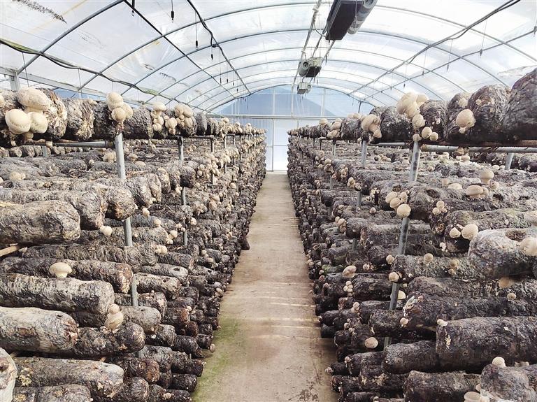 在安阳升旺农业种植专业合作社大棚内,培育香菇的菌棒摆满棚架