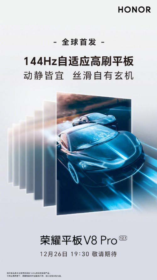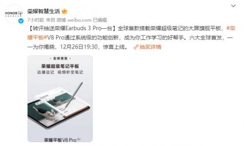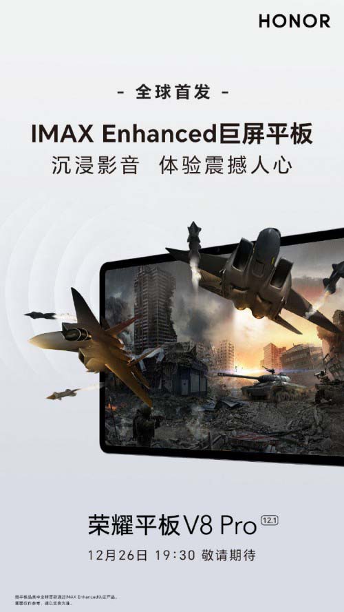 从整体上看,荣耀平板V8 Pro六大首发集结的超强看点,实现了从硬件到软件的高举高打,在视觉体验、影音体验、学习办公体验以及性能体验上全面升级,成功延续了荣耀平板V系列在生产力方面的“革命基因”,堪称平板生产力的“效率之王”。12月26日,荣耀平板V8 Pro将在全场景新品发布会上正式亮相,感兴趣的朋友千万不要错过见证惊喜的时刻。