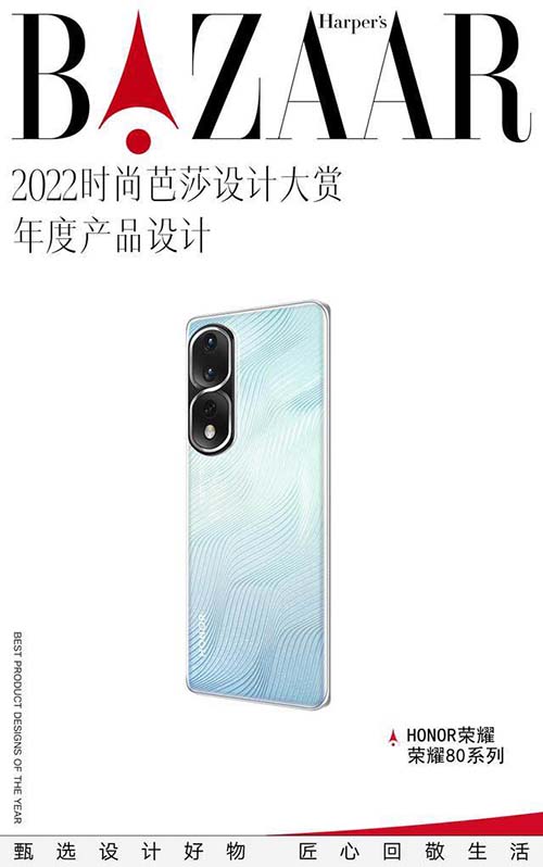 以东方美学与现代潮流有机融合的荣耀80系列,继在“2022时尚芭莎设计大赏年度产品设计”评选中成为唯一获奖手机产品后,又在2023新年伊始再接再厉,接连收获多家行业重磅媒体的诸多奖项,开年即当红,以实力为行业“美学新标杆”正名。