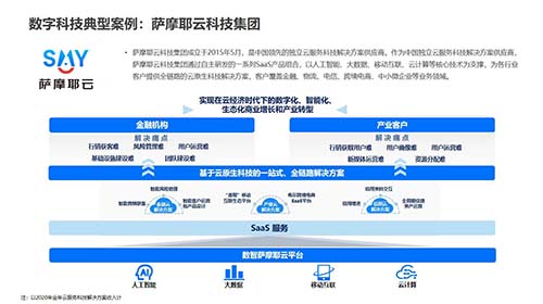 萨摩耶云科技集团通过自主研发的一系列SaaS产品组合,以人工智能、大数据、移动互联、云计算等核心技术为支撑,为各行业客户提供全链路的云原生科技解决方案,客户覆盖金融、物流、电信、跨境电商、中小微企业等业务领域。