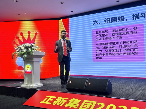 正新集团副总裁王海就正新过去20多年的发展历程做了总结,对加入正新当下发展的机遇、服务理念和未来创新做了精彩的演讲,特别展现了正新集团的全球化进程,展示了未来发展“十万门店千亿产值”的美好愿景。