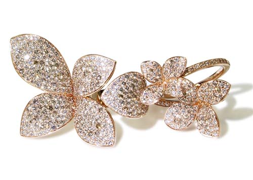 品牌标志性的Giardini Segreti系列,汲取置身米兰神秘的花园和庭院的灵感,镶嵌大量白钻或香槟钻点缀,流动舒展,好似叶片在风中如花朵纷飞,如蝴蝶般振翅舞动的蜕变之旅。