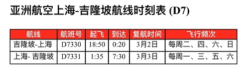亚航将从3月3日起恢复马来西亚亚航长途(D7)上海往返吉隆坡的航班,初计划每周有4个航班,并计划在未来几个月内扩大其在东盟其他两个主要枢纽的服务,上海到曼谷和马尼拉的航班预计在本年度第二季度恢复。