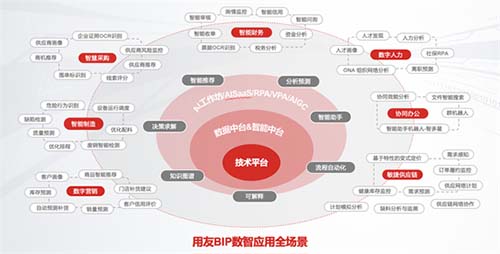 用友BIP智能中台通过构建AIPaaS能力,提供基于AI驱动的系列智能应用服务、智能应用开发、机器人流程自动化(RPA)服务、知识图谱等,助力企业智能开放创新,推动更便捷的商业创新,打造企业智慧大脑。