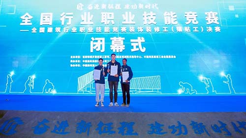 正是由于父亲从小的严格要求,塑造了童林坚韧、精益的品格,童林入选全国建筑行业职业技能竞赛装饰装修工(镶贴工)中建八局代表队以来不断超越自我,以决赛第一名的成绩斩获全国技术能手的荣誉。