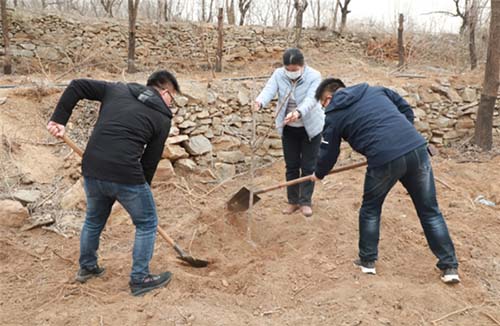 大家挥舞铁锹翻新土,扶植新苗列成行。每一棵新苗,都象征着一份绿色的希望,经过大家的辛勤努力,三百棵新栽好的树苗迎风而立,生机盎然。