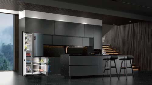 作为行业唯一零嵌的叠式对开门冰箱,卡萨帝冰箱通过创新底部前置散热科技,使冰箱嵌入橱柜时无需预留散热缝,实现零距离自由嵌入。除此之外,冰箱想要做到零嵌,还要用到变轨铰链,而常规变轨铰链承重有限,很难承受对开门冰箱这种更大、更重的门体。对此,卡萨帝一方面升级了隐藏式变轨铰链,使其能够承载更重、更宽的门体;另一方面优化结构设计,使门体变得更轻、更薄,同时攻克了门体变薄后易变形的技术难题。在这样的升级下,卡萨帝不仅为用户节省出更多空间,而且使冰箱与橱柜更融合。这种浑然一体的效果,让厨房更加有序美观。