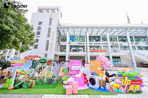 接下来的中国地质大学站点也人气不减,女生们最感兴趣的就是Leader iCase小仙贝美妆冰箱了。由于武汉高温天气多、空气湿度大,护肤品开封后很容易分层、变质,一台小巧可爱、又能实现专业养护的美妆冰箱,可以说是精致女生们的“刚需”了。此外,Leader iCase条式冰箱不仅可拆可合,还支持个性化定制贴膜;而Leader小蓝盒洗消一体机的使用场景也不设限,除菌“小蓝盒”可拆下随身携带;Leader洗地机既能解放双手,又不留水渍,这些家电潮品都能适配Z世代学子们差异化的个性需求,吸引了不少人驻足围观。还有不少学生博主就地架起了直播设备,开始隔空“种草”。