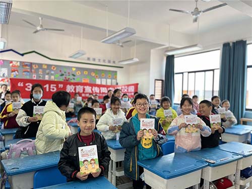 在充分利用线上渠道开展消费者权益保护宣传的同时,长城人寿也积极走进校园开展金融知识普及活动,引导学生树立正确的金钱观、价值观,让金融伴随孩子们健康成长。3月15日,长城人寿员工前往四川省蓬安县锦屏小学开展“3·15”教育宣讲活动,现场向每一位学生赠送《金融伴我成长(小学生读本)》书籍,以生动有趣、简单易懂的方式,宣讲日常生活案例,让小学生们获取金融知识,照亮他们的成长之路。