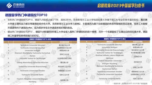 英国本科和硕士申请十大热门高校排名第一均为曼彻斯特大学,其次是利兹大学。澳大利亚本科和硕士留学申请的院校比较集中在悉尼大学、悉尼新南威尔士大学和墨尔本大学。中国学生在加拿大院校的选择中以医博类院校为主,包括多伦多大学、英属哥伦比亚大学(UBC)和麦克马斯特大学。欧洲留学热门院校,以德国为例,本科留学申请十大院校中,TU9院校占7所,硕士留学申请十大院校中,TU9联盟的9所理工大学全部进入前十,德国理工科留学优势得到强力的印证。