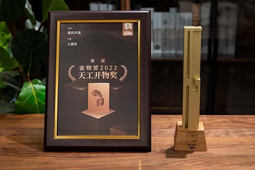 专注实木家具领域的源氏木语,凭借触动情绪的审美设计,符合用户体验的功能创新,环境保护的责任担当,从设计、功能、创新、责任等多维度,获得了评委与大众的一致认可,又一次在“新国货”的竞技场上,突围而出,第二次斩获金物奖。