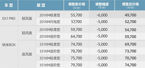 据了解,此次价格调整涵盖东风纳米旗下EX1 PRO、纳米BOX等热销车型,最高调整幅度达6000元。调整后,纳米BOX轻风版顶配车型的官方指导价降至5万级,纳米BOX追风版331km续航版本的入手门槛也降至7万元以内。
