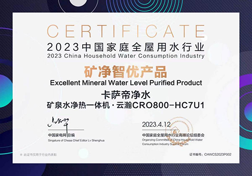 4月12日,由中国家用电器协会指导,中国家电网主办的“智美鲜活·JIE净所能”2023中国家庭全屋用水行业高峰论坛在北京召开,卡萨帝净水为大家带来了健康饮用水解决方案。现场,卡萨帝净水荣获2023中国家庭全屋用水行业贡献主流品牌奖、卡萨帝「矿泉水」净热一体机·云瀚荣获2023中国家庭全屋用水行业矿净智优产品奖。为什么卡萨帝能获此殊荣?一方面,其不断创新,行业内率先推出矿化标准,配合真空聚热技术,让用户一键直饮矿泉开水;另一方面,通过全屋用水场景方案,升级了用户的用水体验。