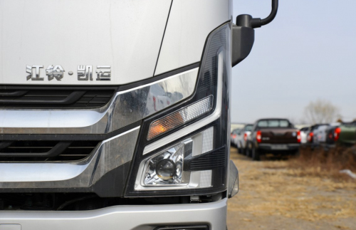 凯运+在外观上做了较大调整,标志性的两条进气格栅向两边做了延展,看上去更为大气,镀铬前格栅,使前脸造型前卫十足,适配年轻卡友们的审美。全新设计的LED高亮度一体式透镜大灯,搭配一体式的前保险杠,让整车颜值相较老款可谓脱胎换骨。