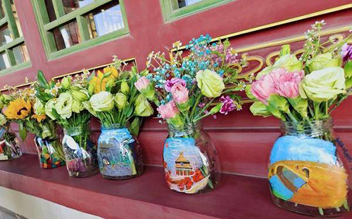河北14地美丽风光被河北高校学生“搬”到了芝麻官罐头瓶上。石家庄赵州桥、张家口大境门长城、保定直隶总督府、沧州铁狮子、衡水冀州古城、邢台清风楼……在芝麻官罐头瓶上展现得惟妙惟肖,美不胜收。