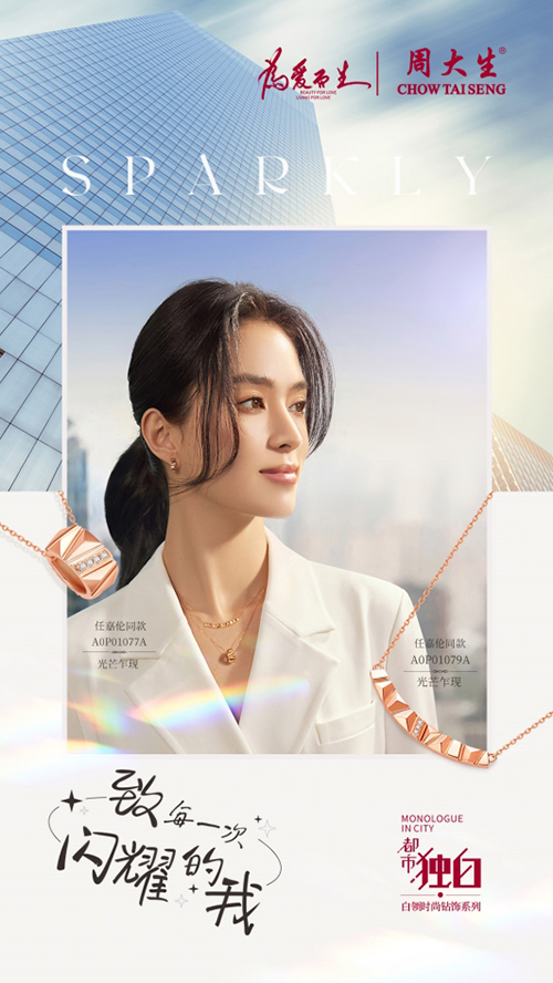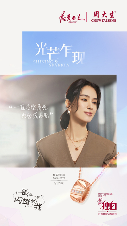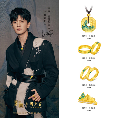 2023年4月10日,周大生珠宝正式宣布续约华语流行文化明星代表任嘉伦为品牌代言人,并重磅推出了都市独白、国家宝藏两大套系新品,紧扣年轻人追求“为爱而生”的主题,携手心上“任”共同探索更多“美于形,悦于心”的珠宝精品,开启一场全新的珠宝闪耀之旅。