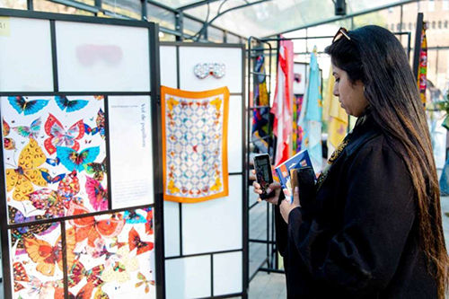 参观者在中国丝绸艺术设计展品前驻足欣赏