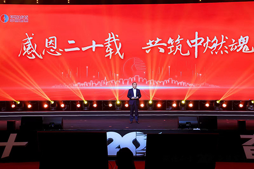 庆祝大会上,刘明辉发表了主题为“感恩二十载共筑中燃魂”的演讲。