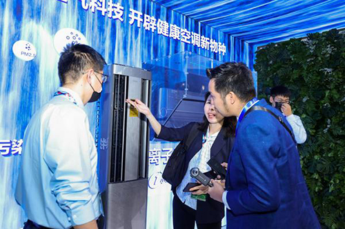 拿洗空气来说,当看到洗空气空调的内置水箱,真的有洗下来的浮尘,不少参观者表示“洗掉的灰尘肉眼可见,用起来会很踏实”。这款空调应用全新的生态水幕水洗空气技术,在净化除菌的同时,还能让空气更加湿润,多功能的叠加,让其成为现场的“明星”产品,吸引众多参观者的注意。